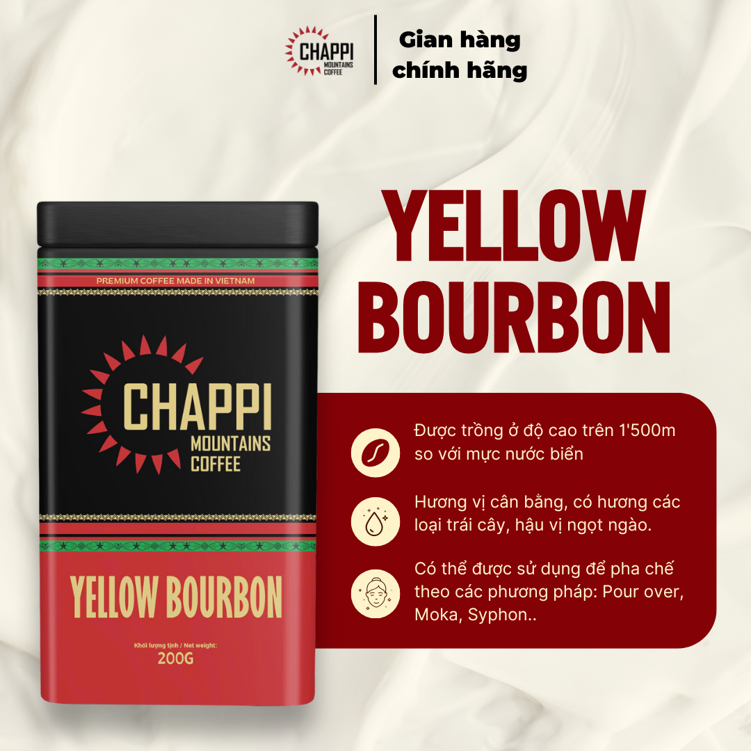 - Cà phê Yellow Bourbon là một sản phẩm độc quyền từ Chappi Mountains Coffee, luôn được giới sành cà phê săn lùng.